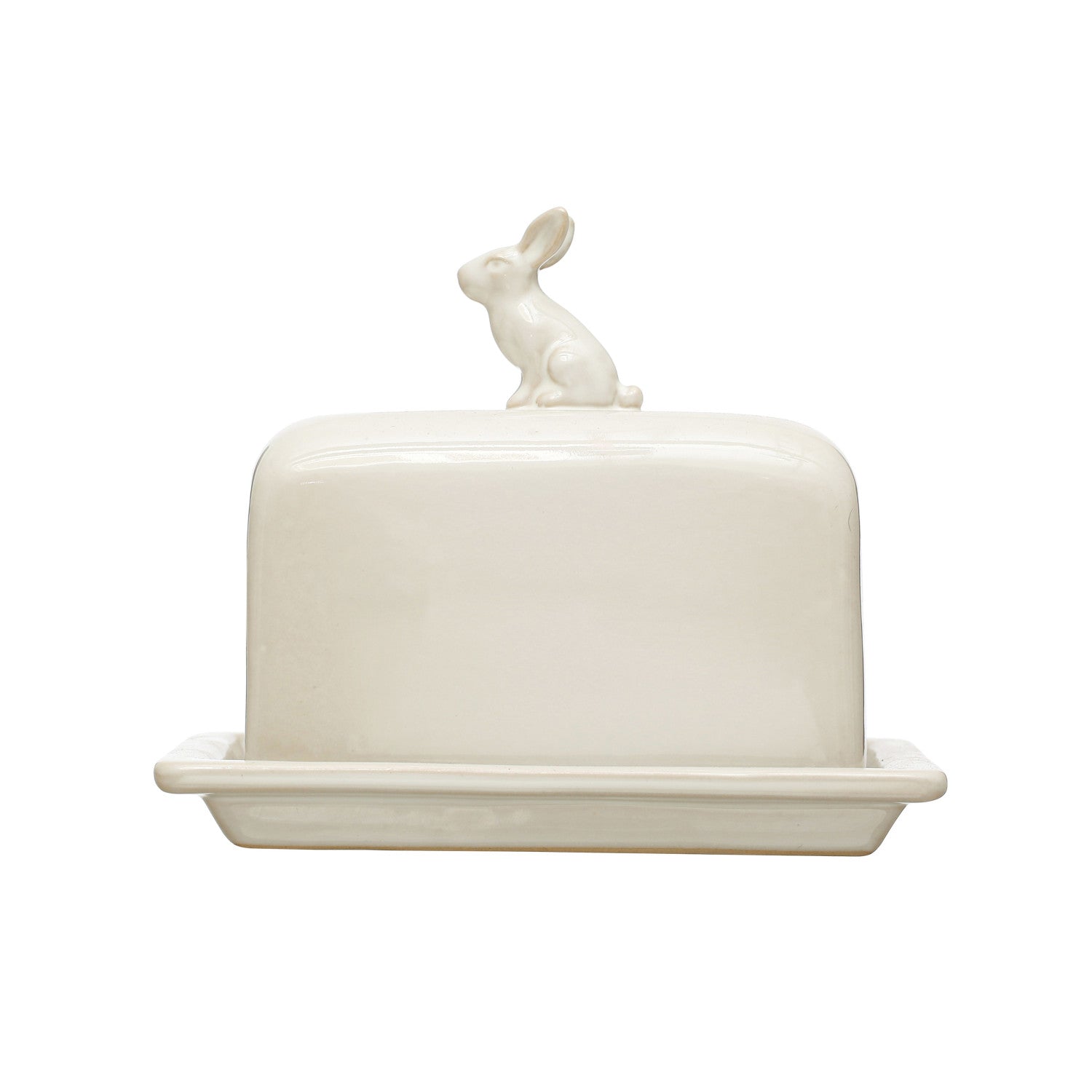 Stoneware Baker or Butter Dish with Rabbit Finial