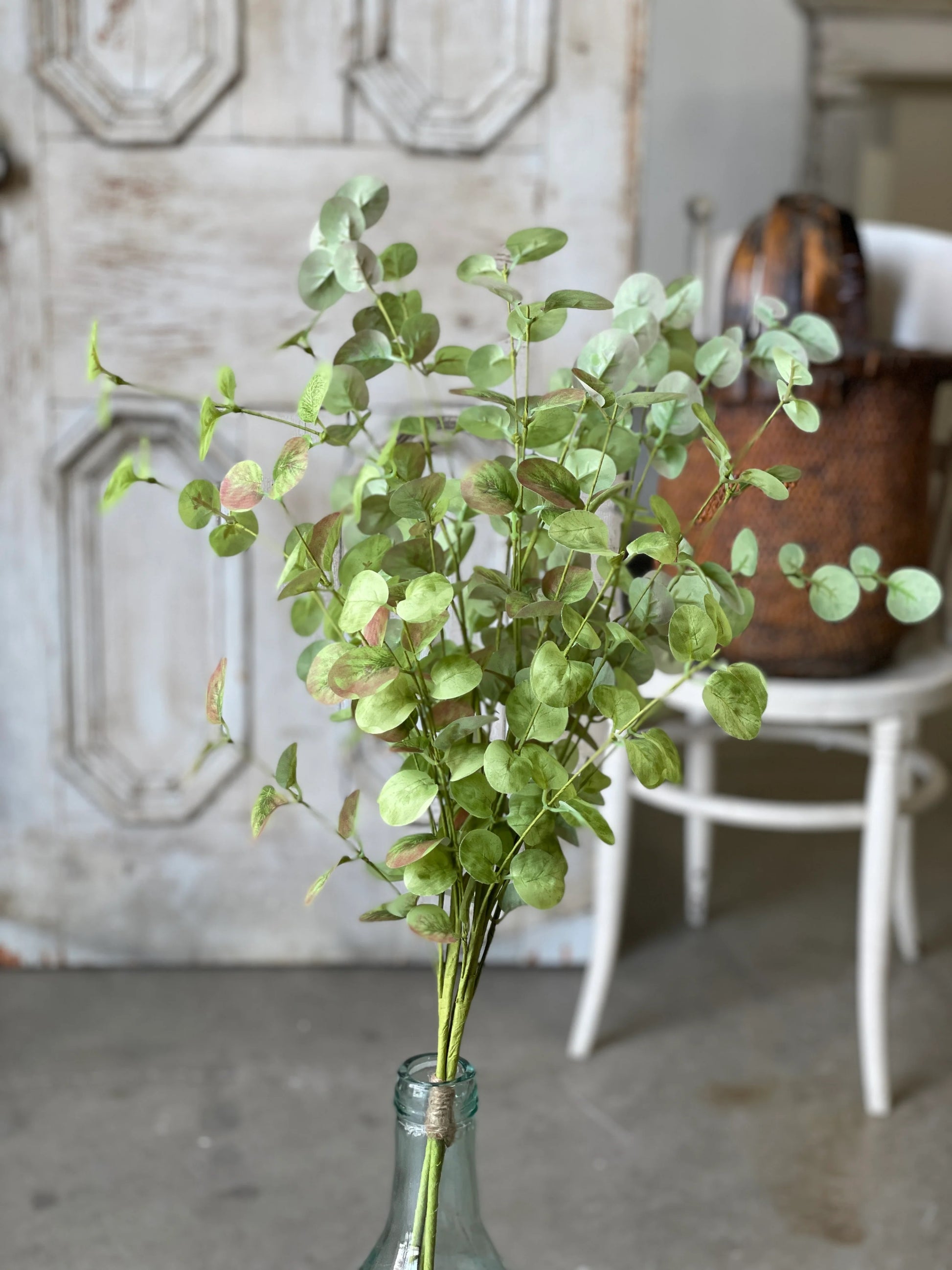 This collection boasts dual colored penny leaf eucalyptus that is bound in a bundle of three with a twine tie. They can remain bound or can be separated. 34" Stem.