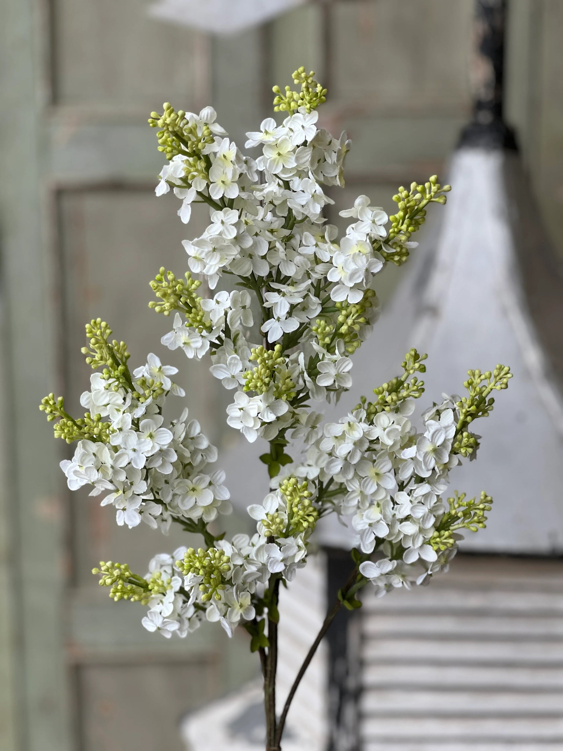 The Chiffon Spires Cream Lilacs boast showy florets with a pretty flush of color on their four petaled blooms topping tall stems. This collection is made even more charming with the addition of buds that appear on cusp of blooming.