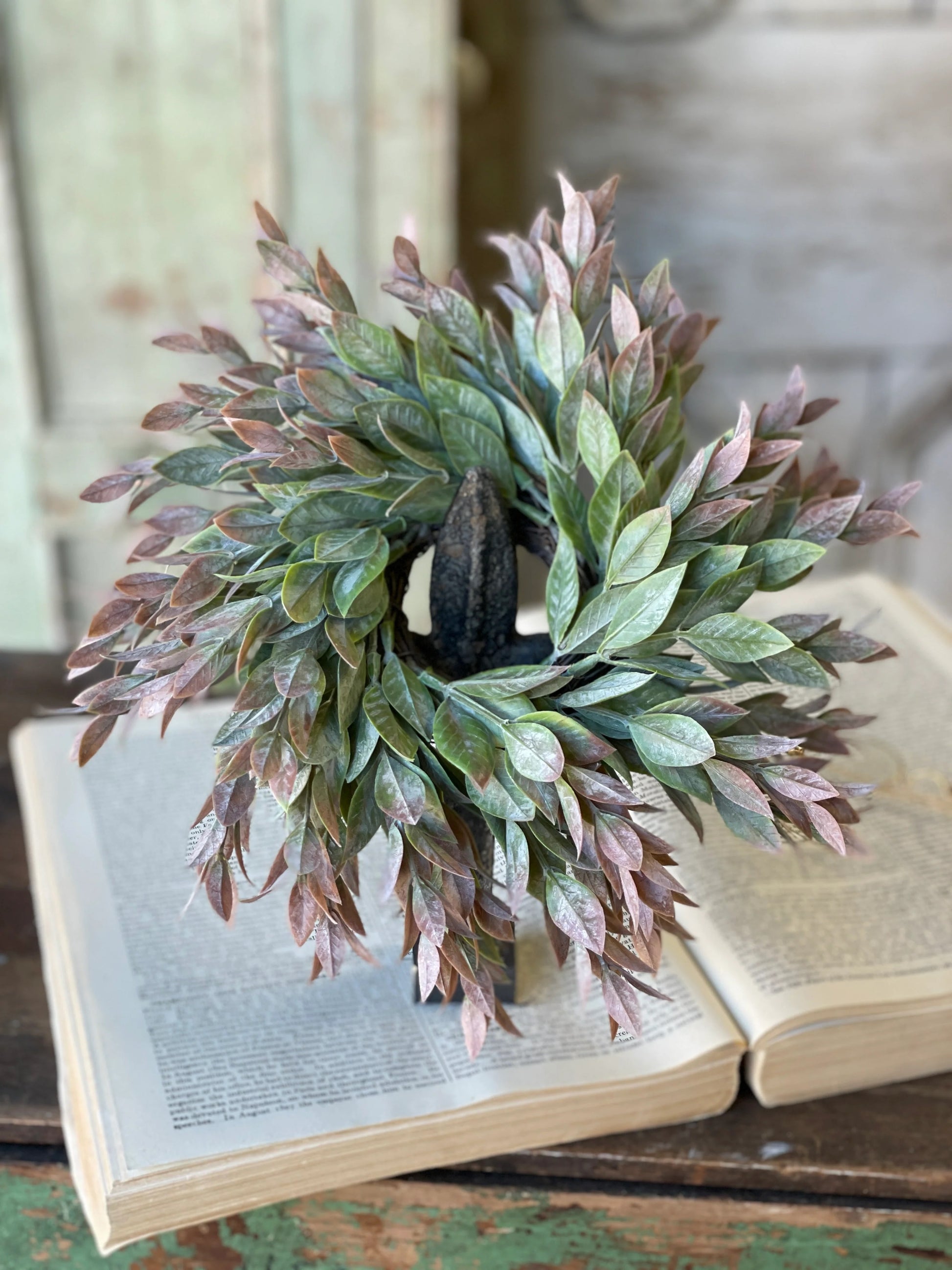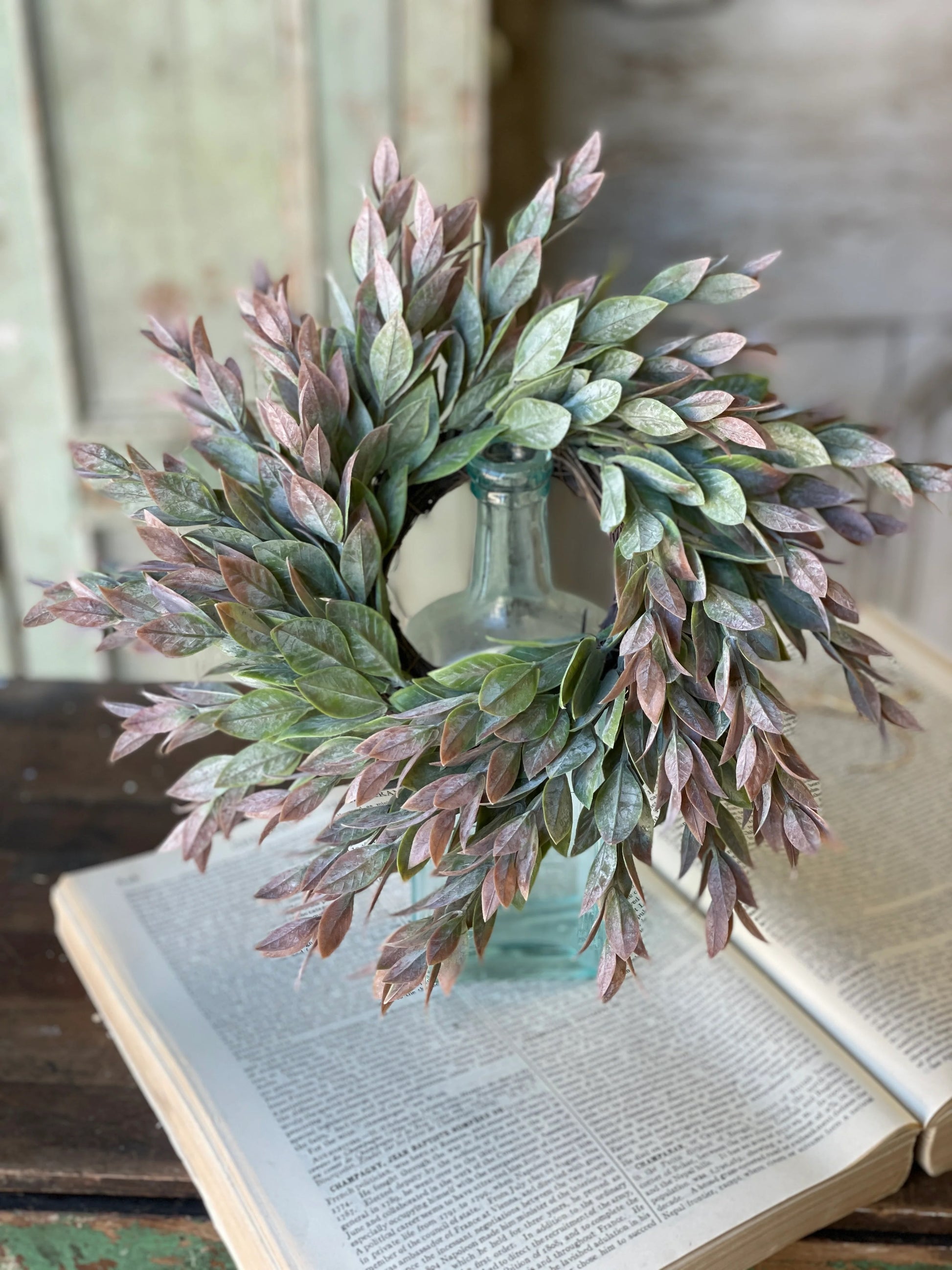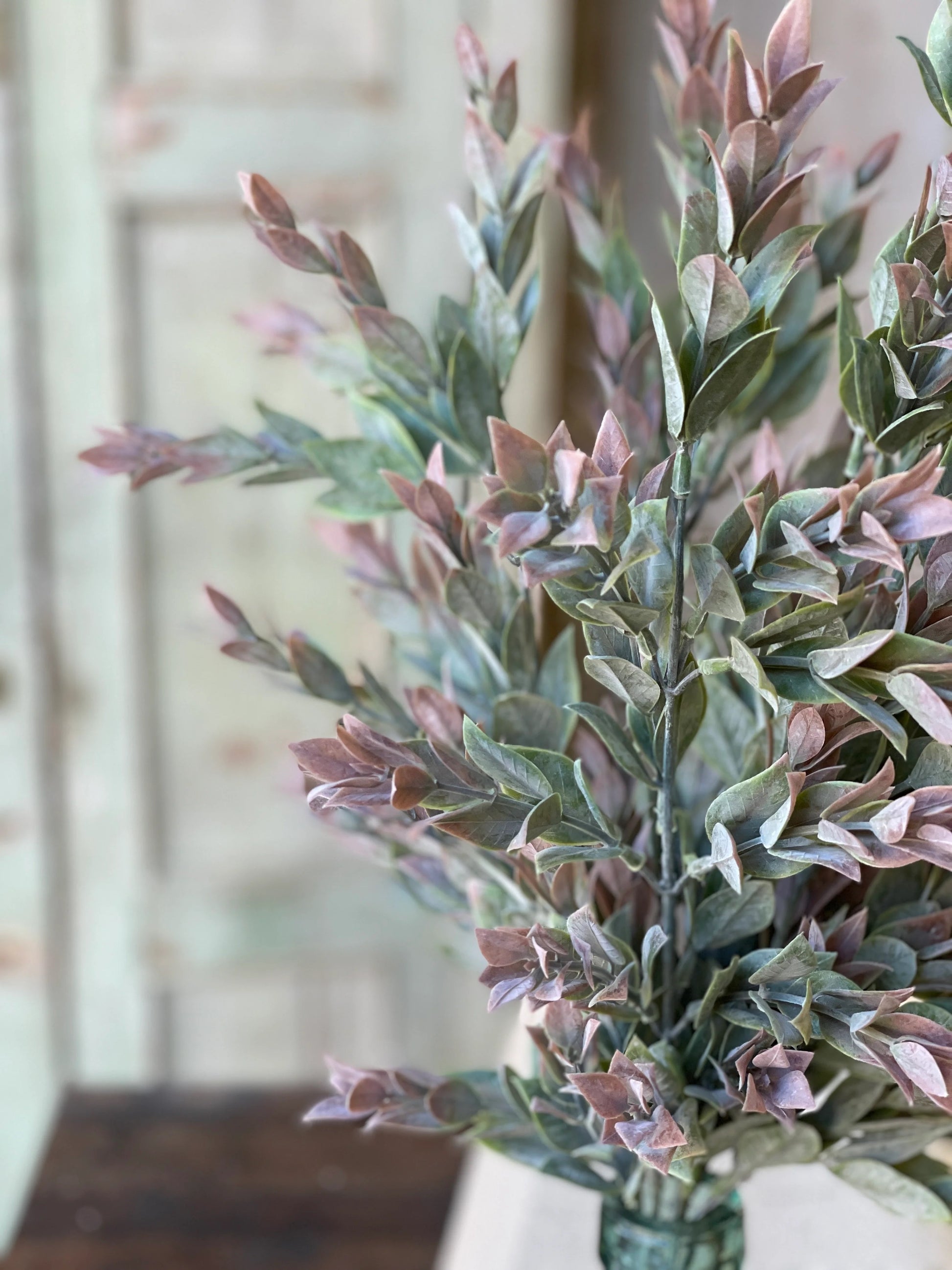 Our Dawn's Break floral collection features a multitude of lightly powdered, spear shaped leaves that deepen in color as they cascade outward.