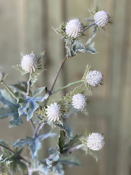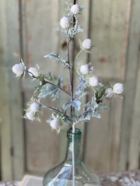 Arcing stems are topped with thistle-like blooms and lovely foliage. Features a lightly flocked finish that adds yet another element of charm to an already compelling floral.