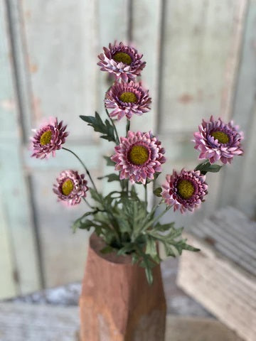 Double petaled daisy-like blooms top graceful stems. Available in three colors, each sold separately.