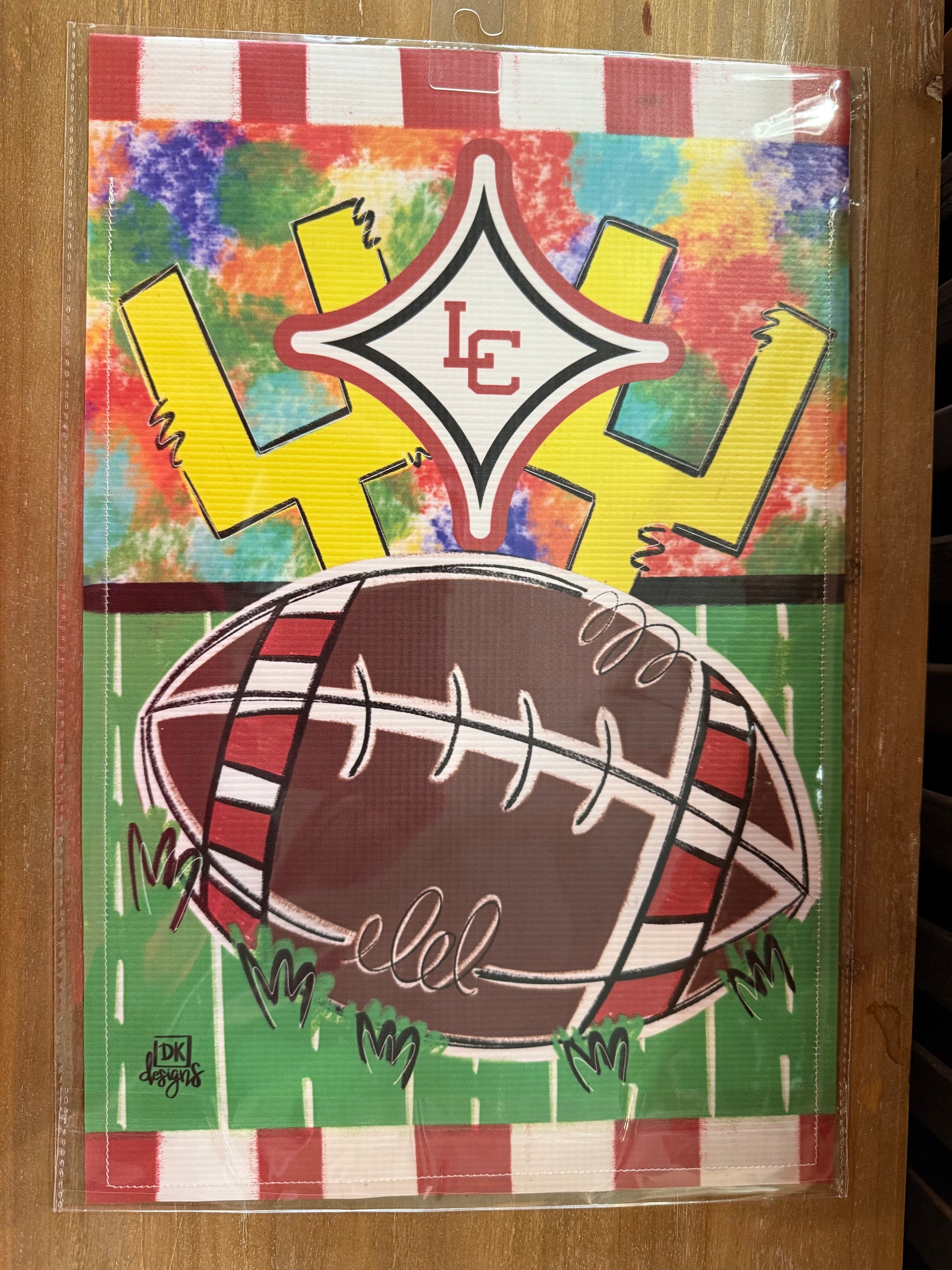 Custom Garden Flag featuring Lincoln County Red Devils. Double-sided, Weather & Fade Resistant. Durable UV printed vinyl.