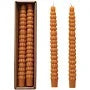 Orange taper candles featuring embossed pumpkins. Ideal for fall. 2 per box. 10 inches.