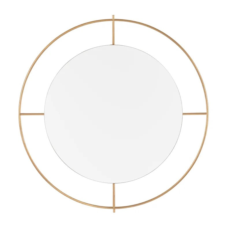 Introducing our Vancleave Circular Gold Metal Wall Mirror with a Floated Frame, a captivating and luxurious addition to elevate the beauty of your space. This wall mirror is more than a reflective surface; it's a piece of art that seamlessly combines modern sophistication with timeless opulence. The circular design adds a touch of contemporary charm, while the floated frame allows the mirror to appear suspended, creating a visual delight that enhances the ambiance of any room.