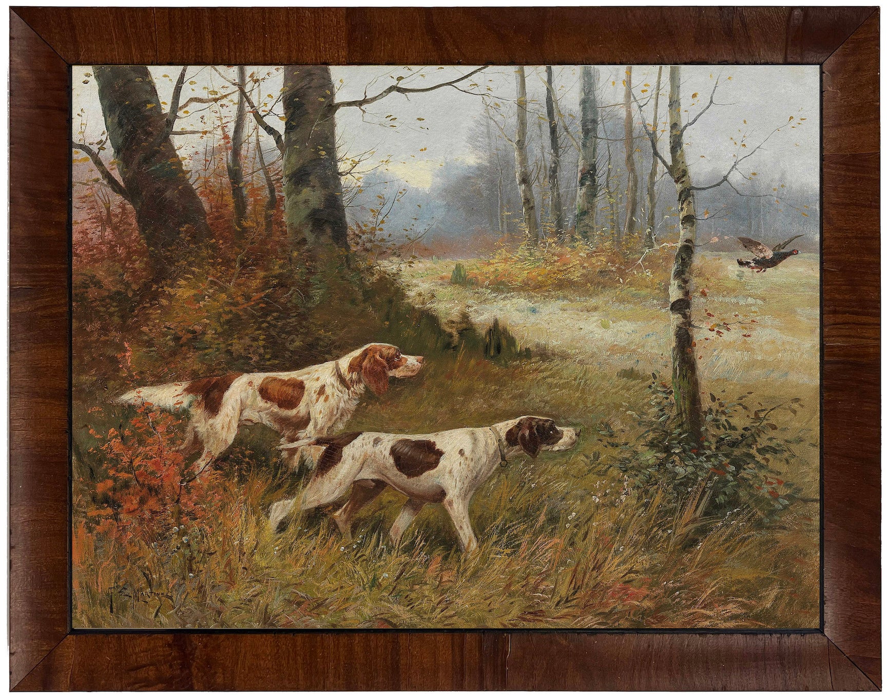 Vintage Hunting Dogs Oil Reproduction Framed Art