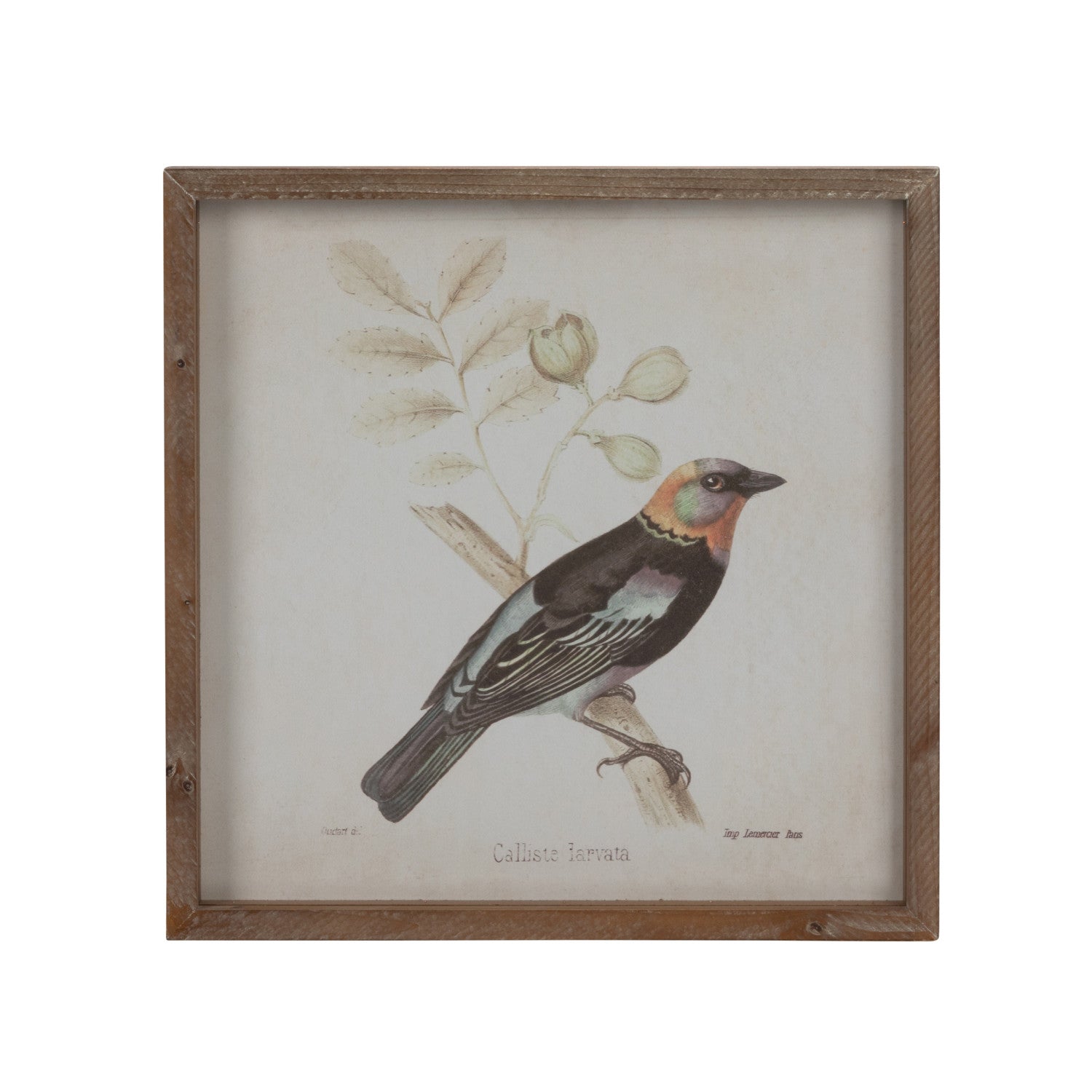 14" Square Wood Framed Glass Wall Décor w/ Bird, Multi Color, 2 Styles