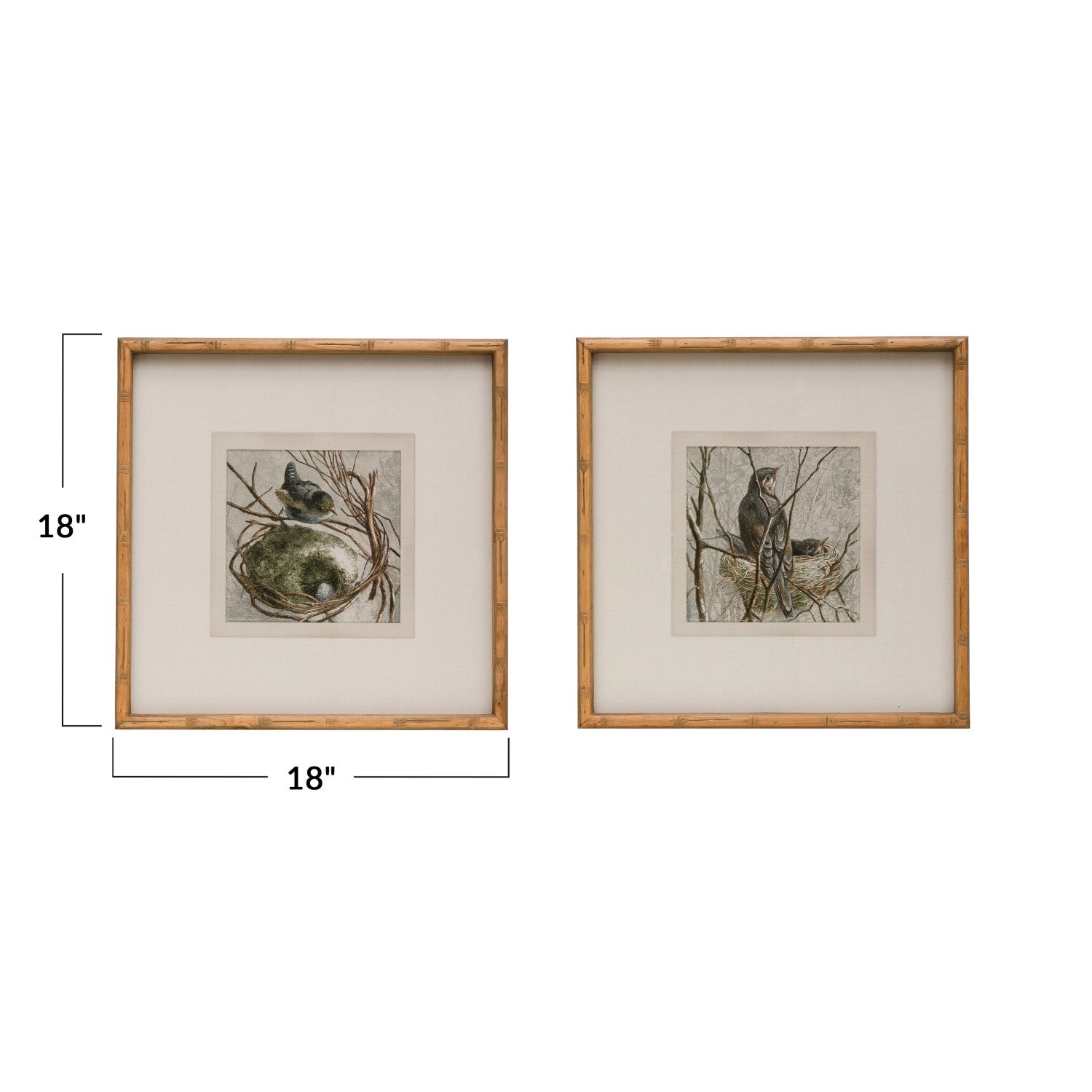 18" Square Wood Framed Glass Wall Décor w/ Bird & Nest, Choice of 2 Styles