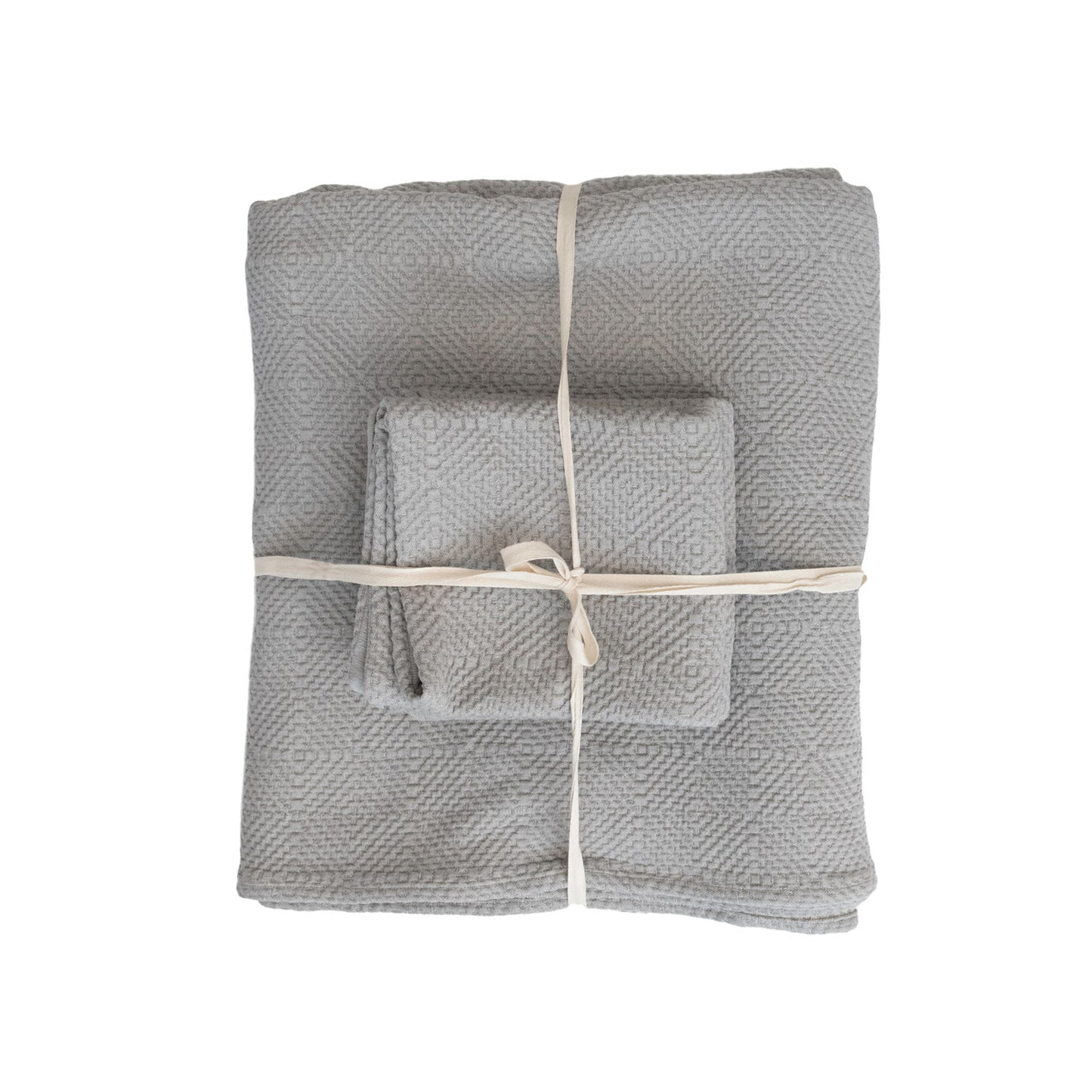 100% Woven Cotton Jacquard Bed Cover w/ 2 Standard Shams, Queen, Grey & Cream Color, Set of 3