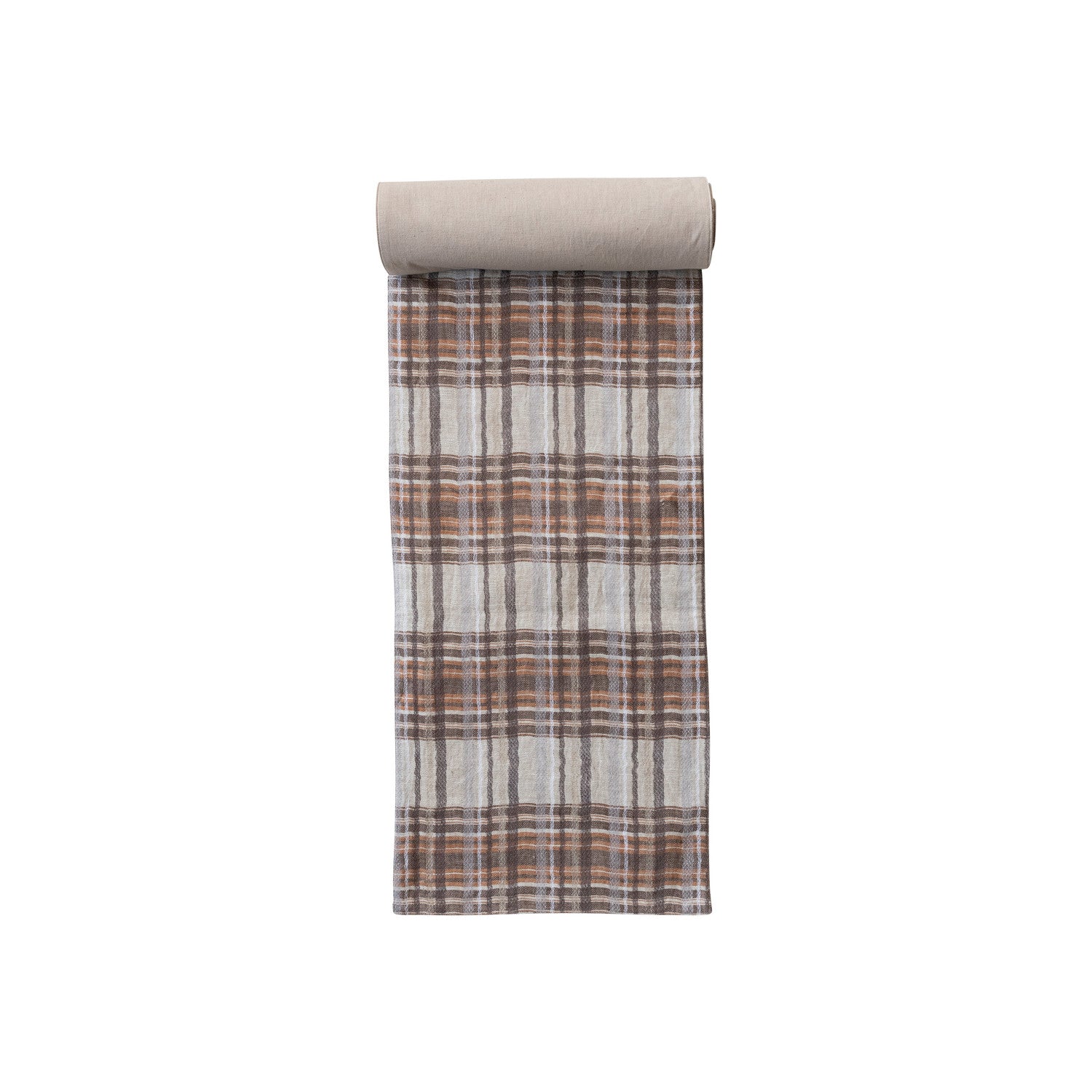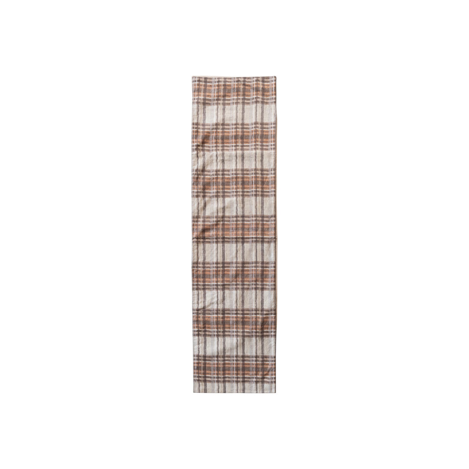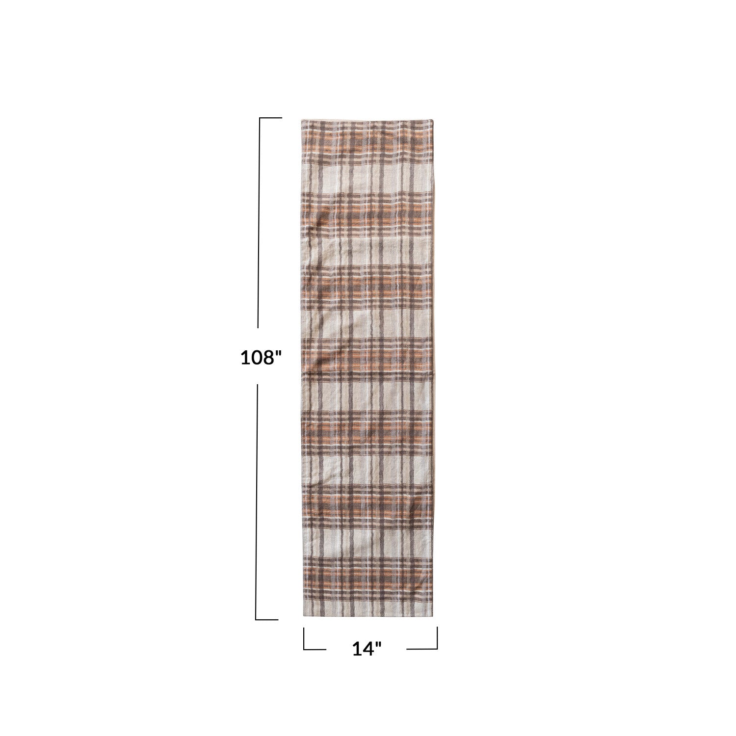 108"L x 14"W Woven Cotton Table Runner, Cream Color, Brown & Orange Color Plaid