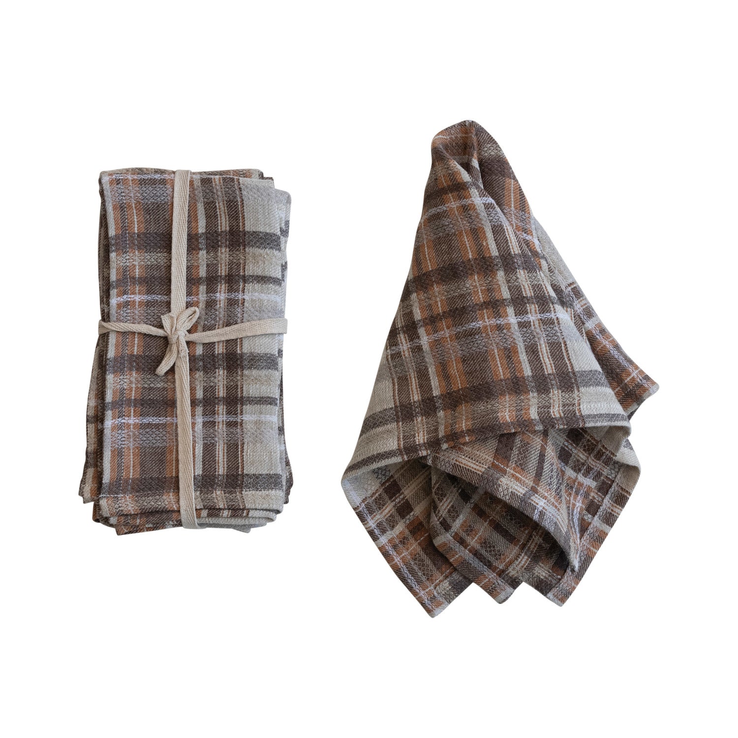 Woven Linen Napkins, Multi Color Plaid, Set of 4