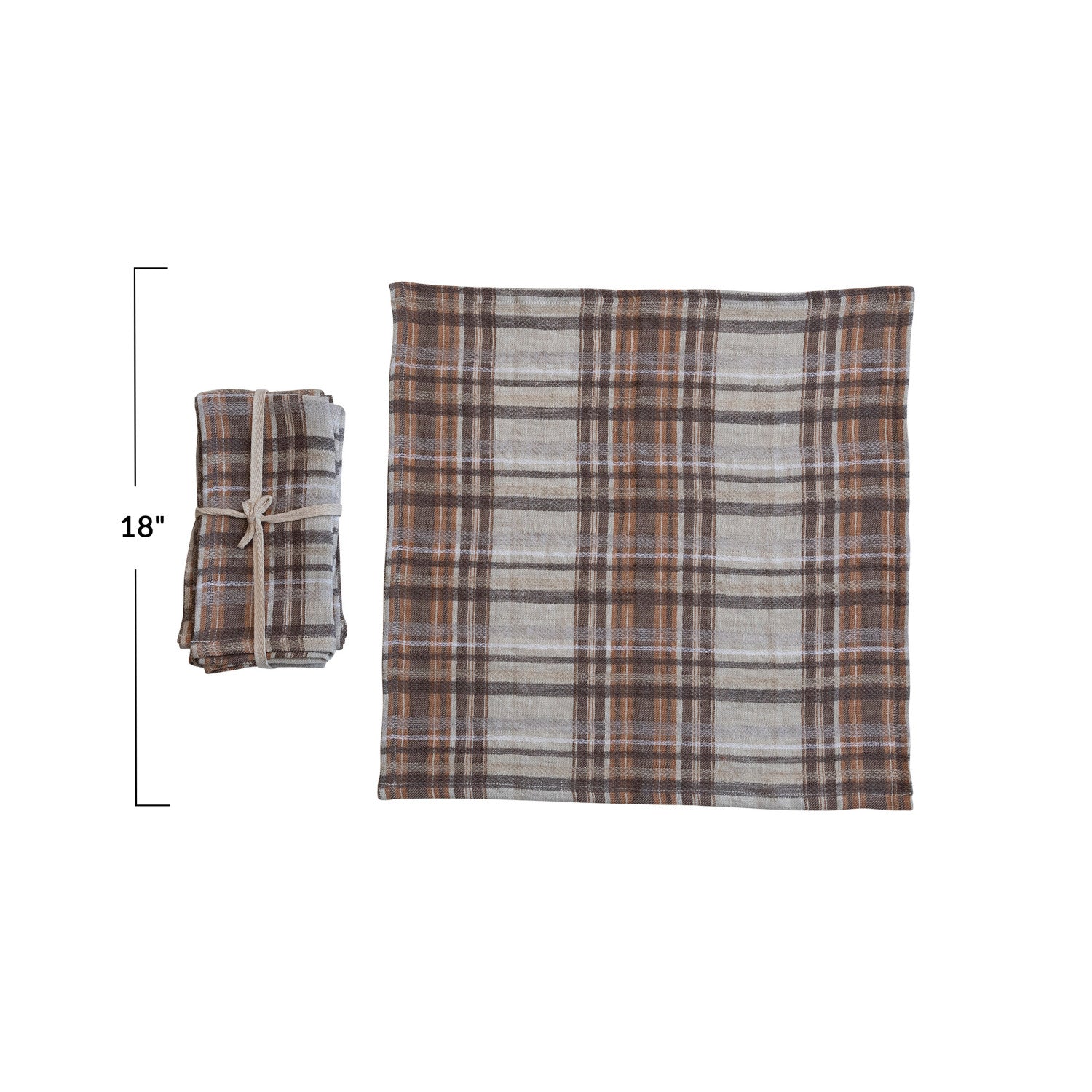 18" Square Woven Linen Napkins, Multi Color Plaid, Set of 4